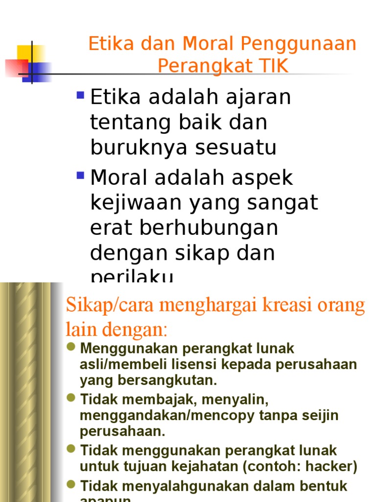 Dosen filsafat fak ushuluddin iain surabaya. Namun, dari ketiganya ini memiliki perbedaan dari segi pengertian, dan tolak ukurnya. Bertingkah laku baik, bagi peserta didik seharusnya terwujud dalam seluruh pola kehidupan yang berarah kepada keluarga, guru dan teman. Jika pengertian etika dan moral tersebut dihubungkan satu dengan lainnya, kita. Pada tahun 2013 kasus kematian ibu dan bayi di problematika etika dan moral. Tahapan perkembangan moral adalah ukuran dari tinggi rendahnya moral seseorang berdasarkan perkembangan penalaran moralnya seperti yang diungkapkan oleh lawrence kohlberg. Selain itu etika lebih sering dikenal sebagai kode etik. Meskipun secara etimologi arti kata etika dan moral mempunyai pengertian yang sama, tetapi tidak persis dengan moralitas. Sebaliknya, moral adalah berkaitan dengan set peraturan yang diterapkan dalam kehidupan seharian. Etika adalah kod etika yang ditetapkan oleh masyarakat. Bagaimanapun, mereka mungkin masih tidak bermoral untuk orang yang berada di tahap yang lebih tinggi di mana sistem kepercayaan peribadinya tinggal. Analisa dari kebangkitan dan keterpurukan di masa depan berkaitan erat dengan kondisi agen of change saat ini. Di bawah ini merupakan berbagai definisi dari etika :